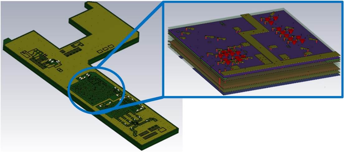 SIMULIA CST拥有强大的工具,可用于导入、分析、模拟和导出复杂的PCB信息。使用电子设计自动化(EDA)工具,可以将完全定义的堆栈结构带入各种求解器环境中。